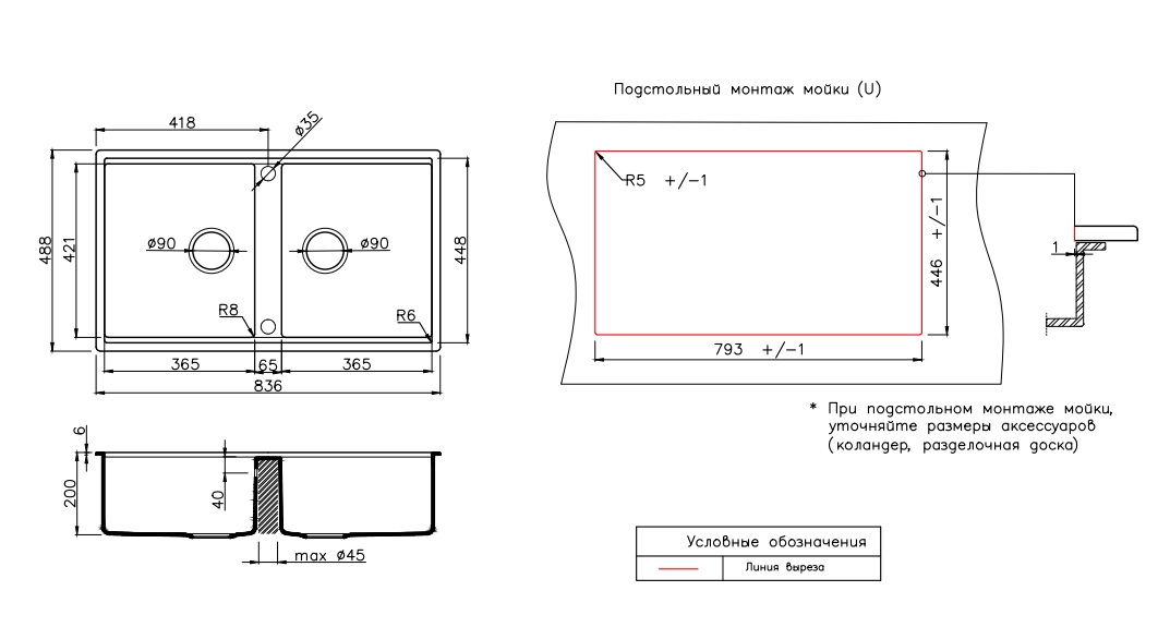 • Возможные вклейки мойки