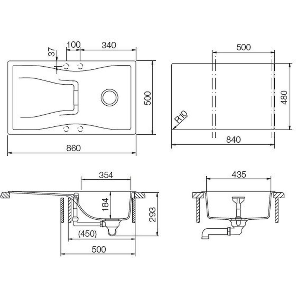 • Вариант установки мойки