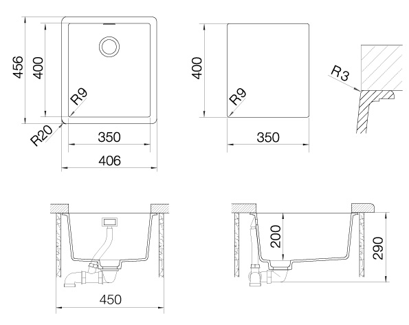 • Вариант установки мойки